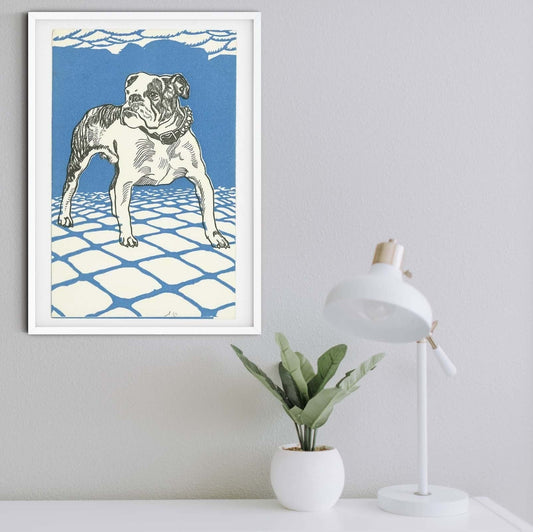 Framed bulldog print, vintage print dog art print, bulldog wall art