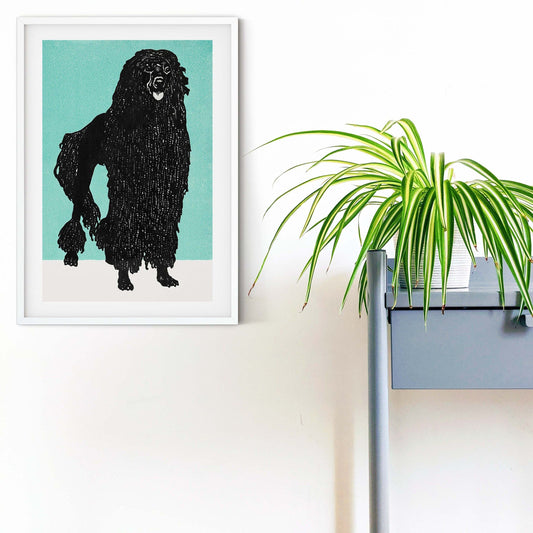 Framed poodle dog print, vintage print dog art print, poodle wall art, vintage poster poodle print