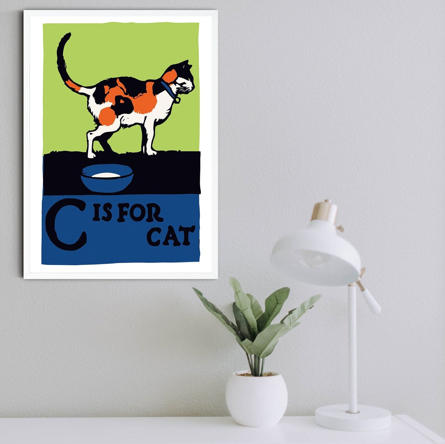 C is for Cat print, letter C animal alphabet cat poster nursery prints