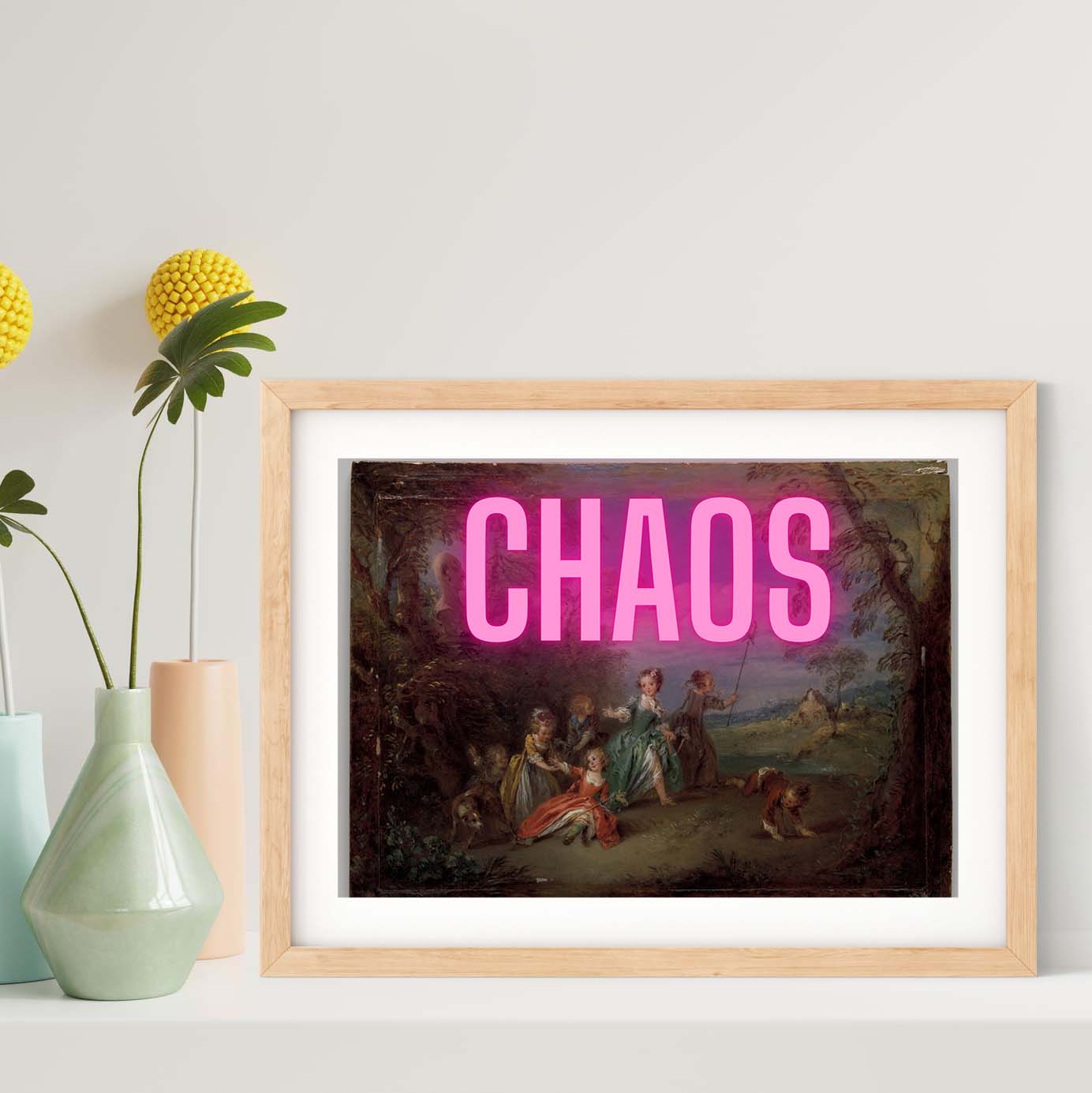 Chaos neon art, altered art funky print