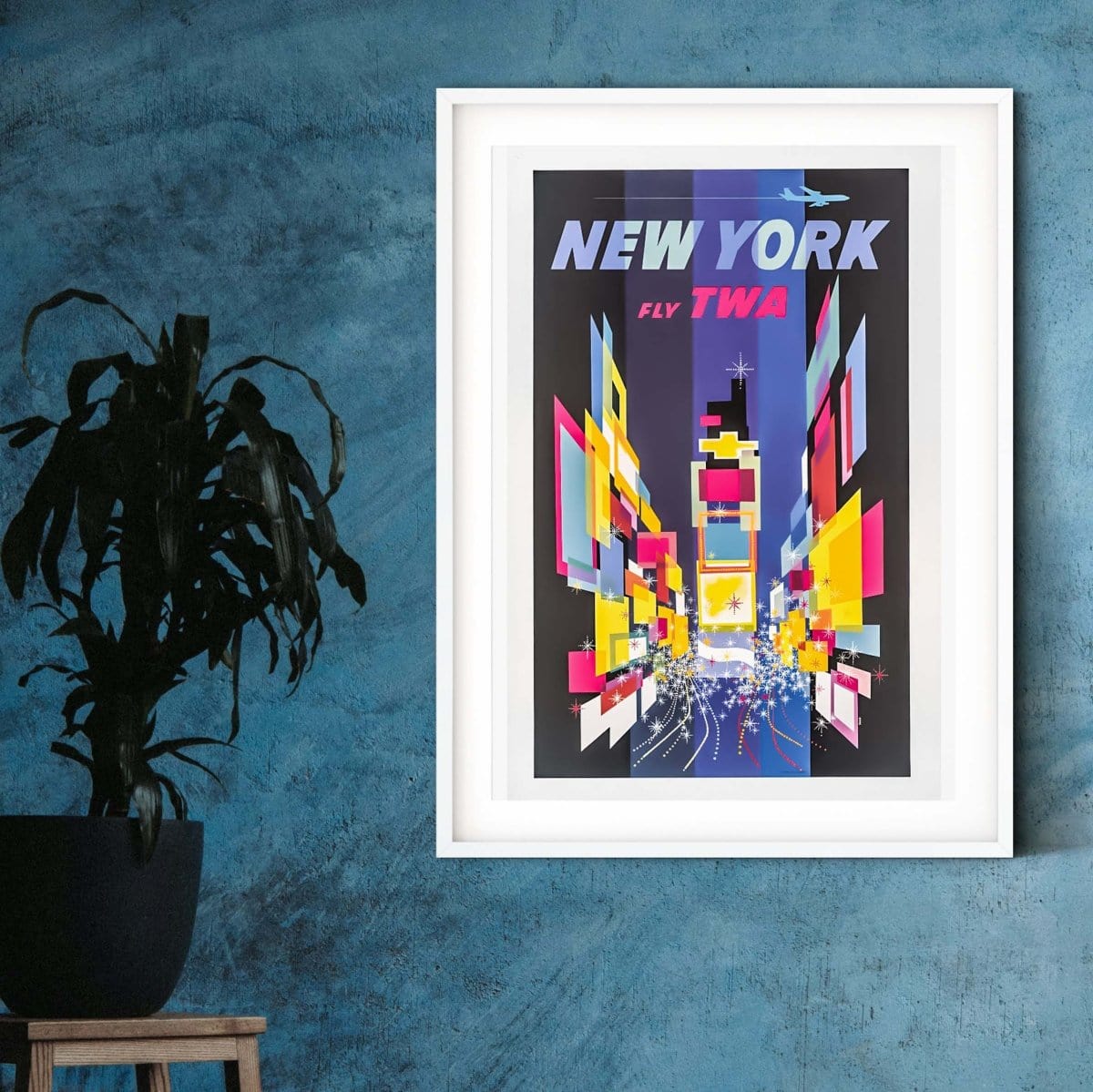 Vintage airline posters travel print. 1960s TWA New York advertising print by David Klein which has been digitally restored for a fresh retro print.