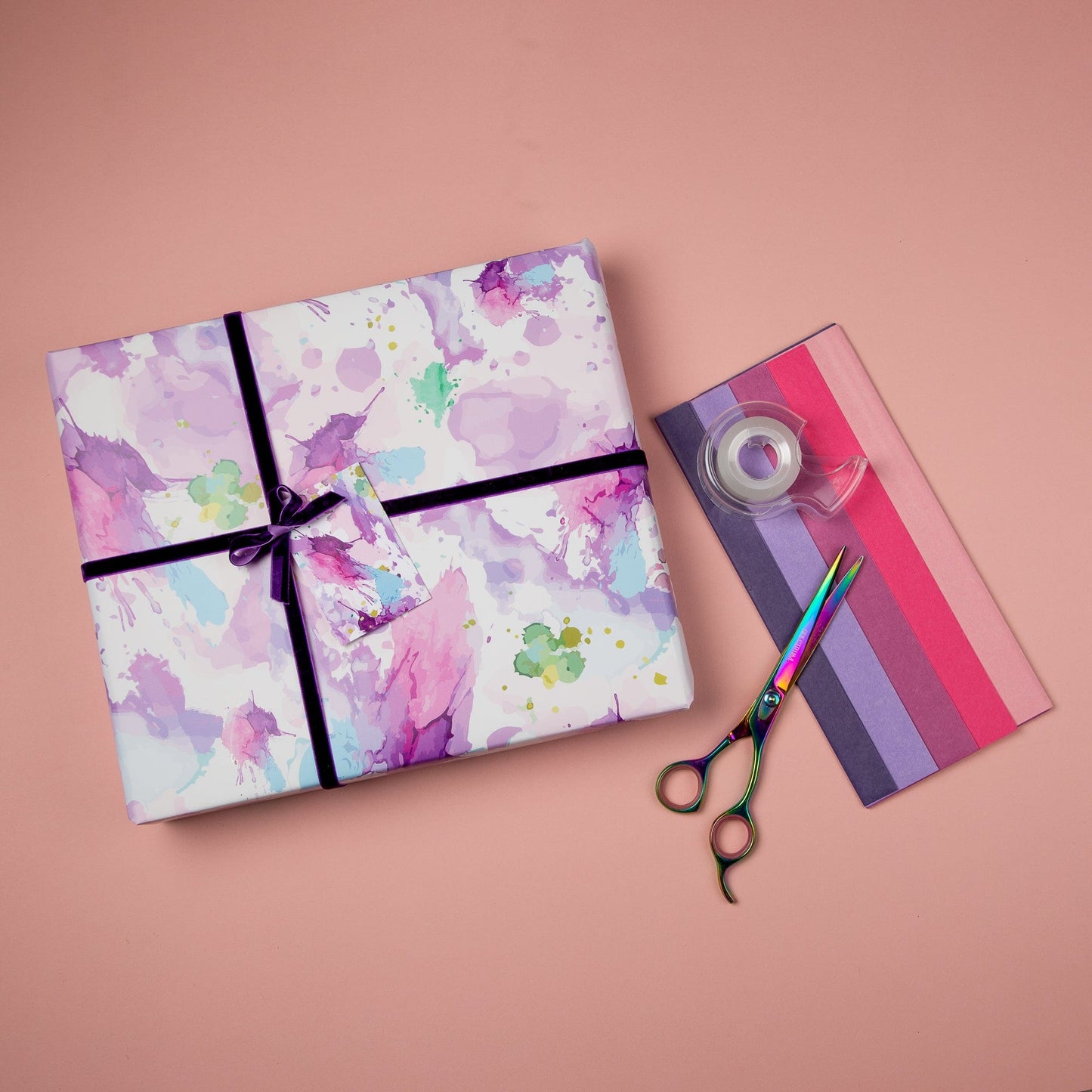 Watercolour Splash Wrapping Paper gift tag Set