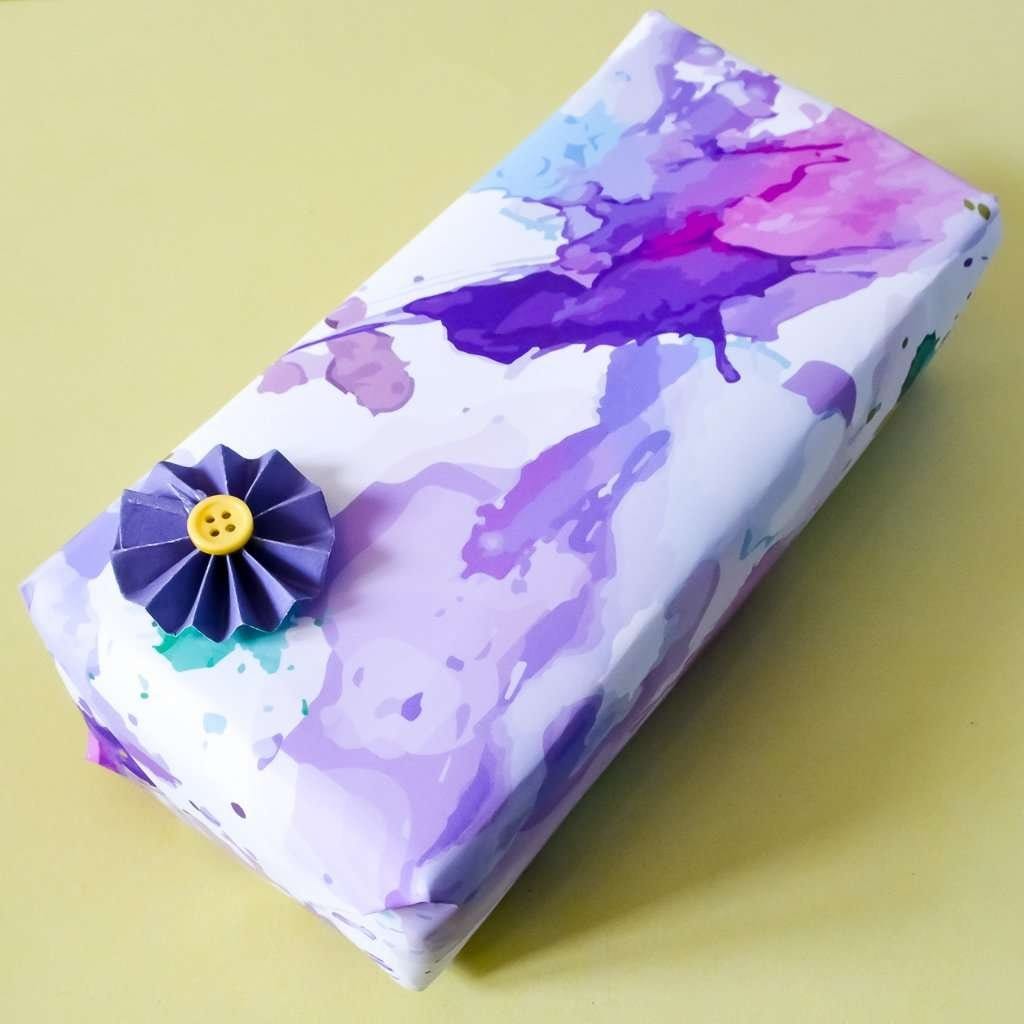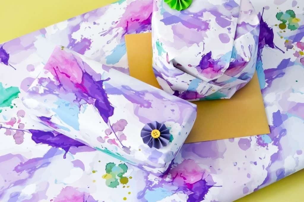 Colourful Watercolour gift wrap watercolour splash on white luxury wrapping paper set, perfect for birthday gifts.