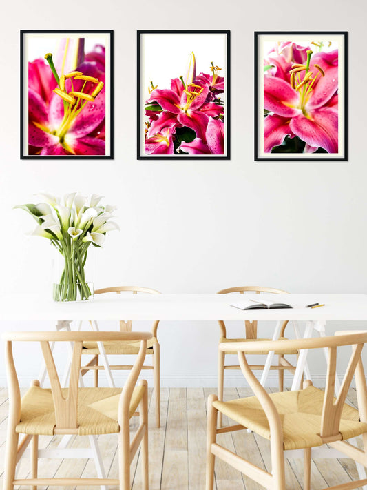 Set of 3 Pink Tiger Lilly minimalist photography prints