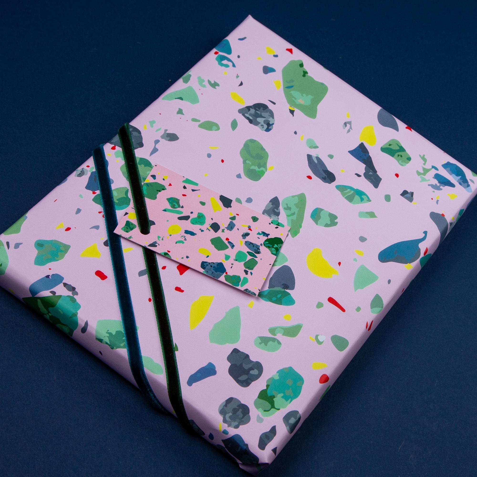 Terrazzo Pale Pink Wrapping Paper gift tag Set, luxury gift wrap