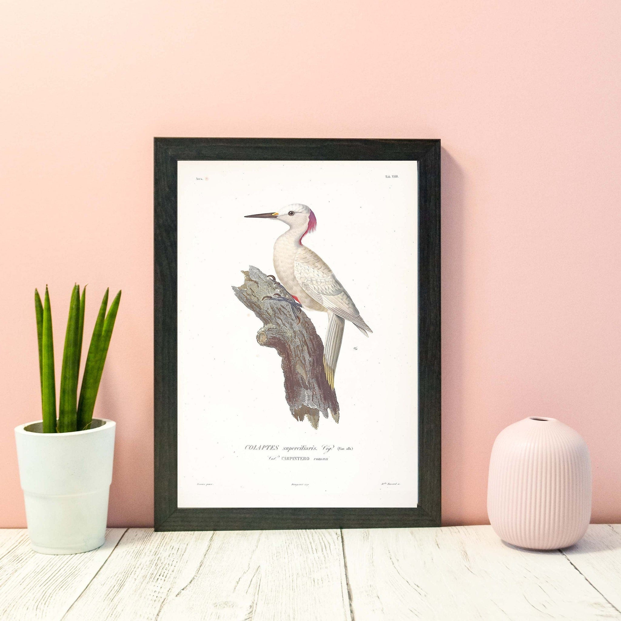 Vintage tropical Woodpecker birds wall art print. Scientific naturalist illustration art print ornithological 'Colaptes Superciliaris' from Cuba, taken from the original 1838 coloured scientific drawings.