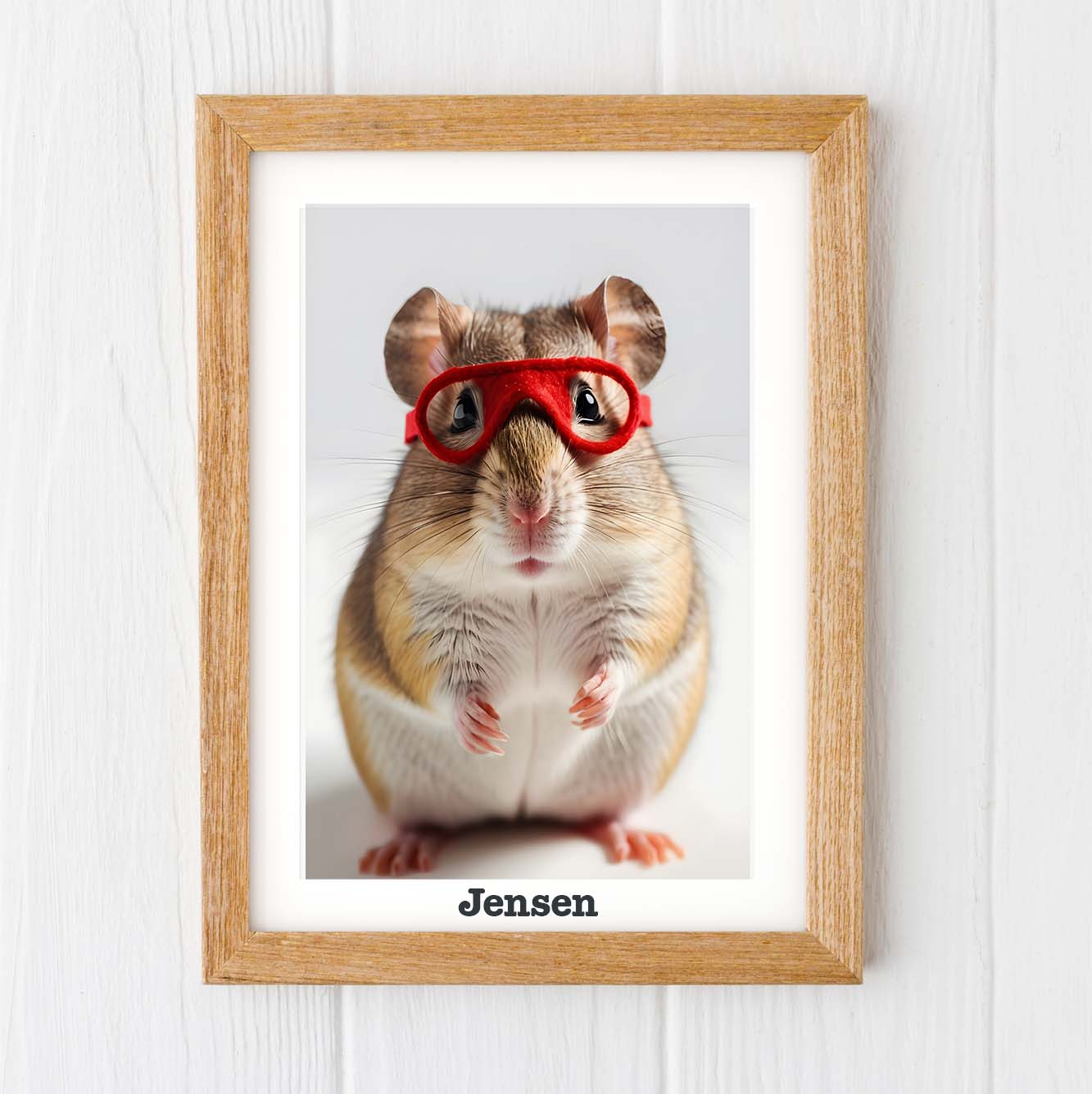 Children's Superhero Mouse print, baby animal personalised nursery prints