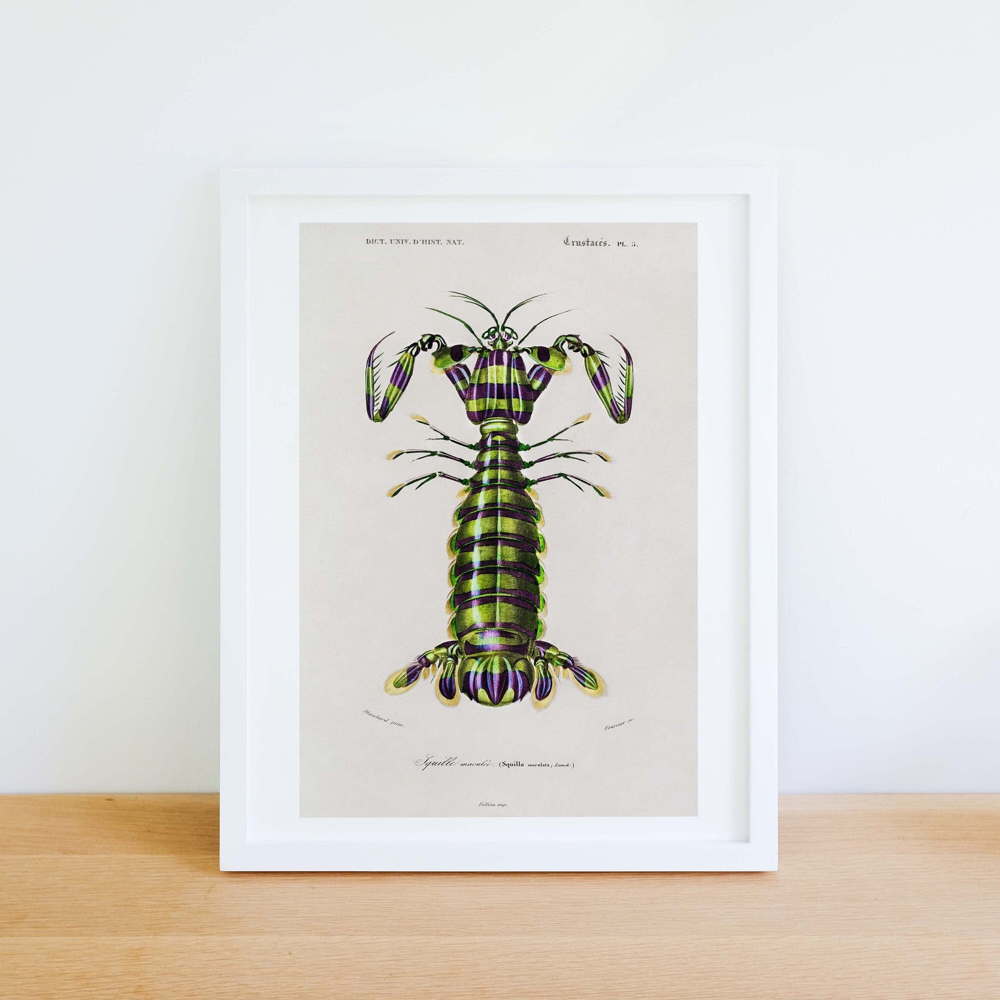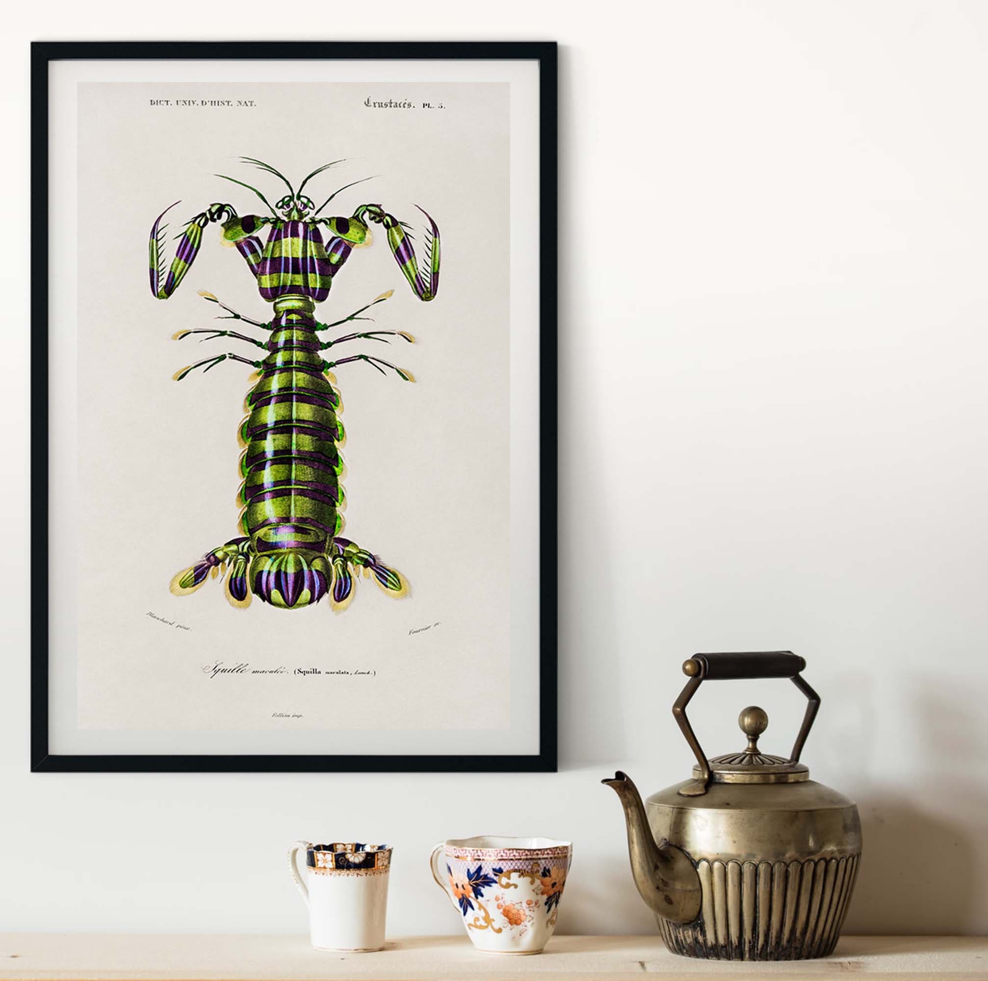 Framed Giant Mantis Shrimp Print, Vintage Scientific Kitchen Art