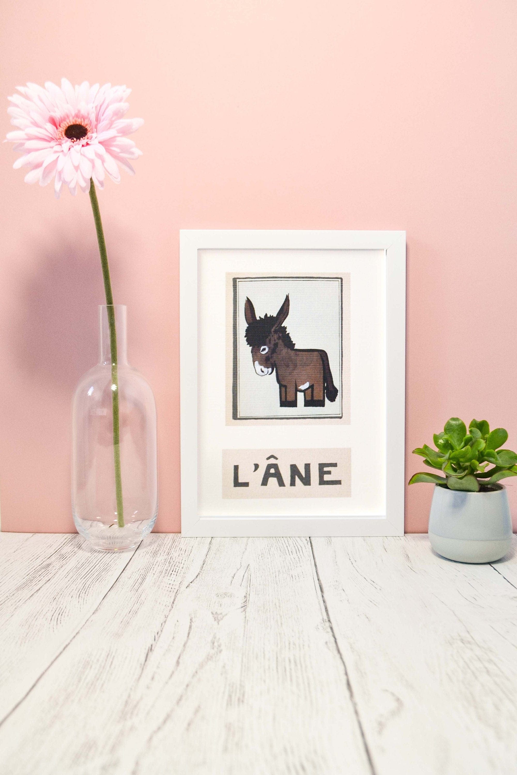Vintage illustration donkey print; L'ane- donkey artwork taken from a 1912 French children's book. Ideal children's giraffe prints for bedroom or nursery prints.