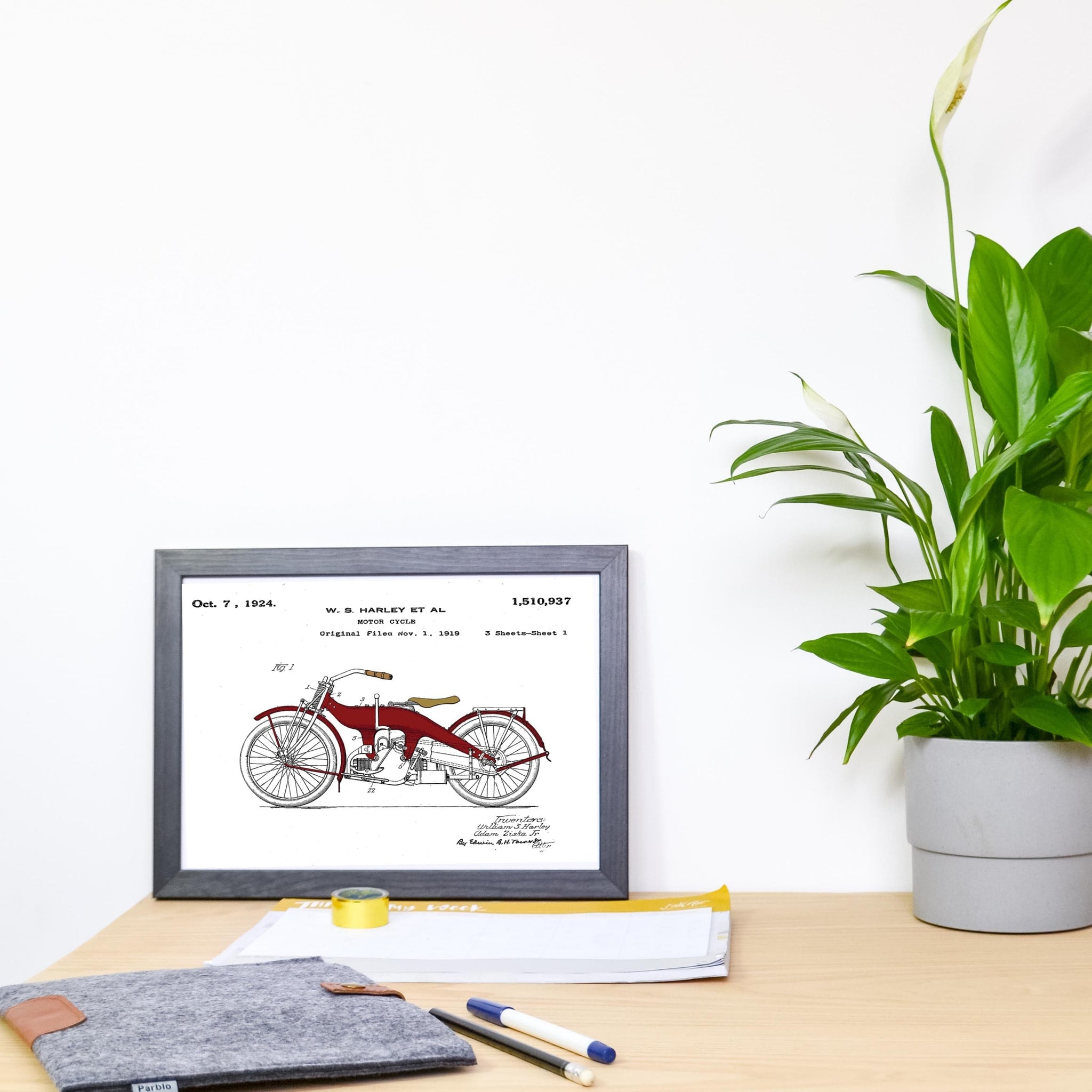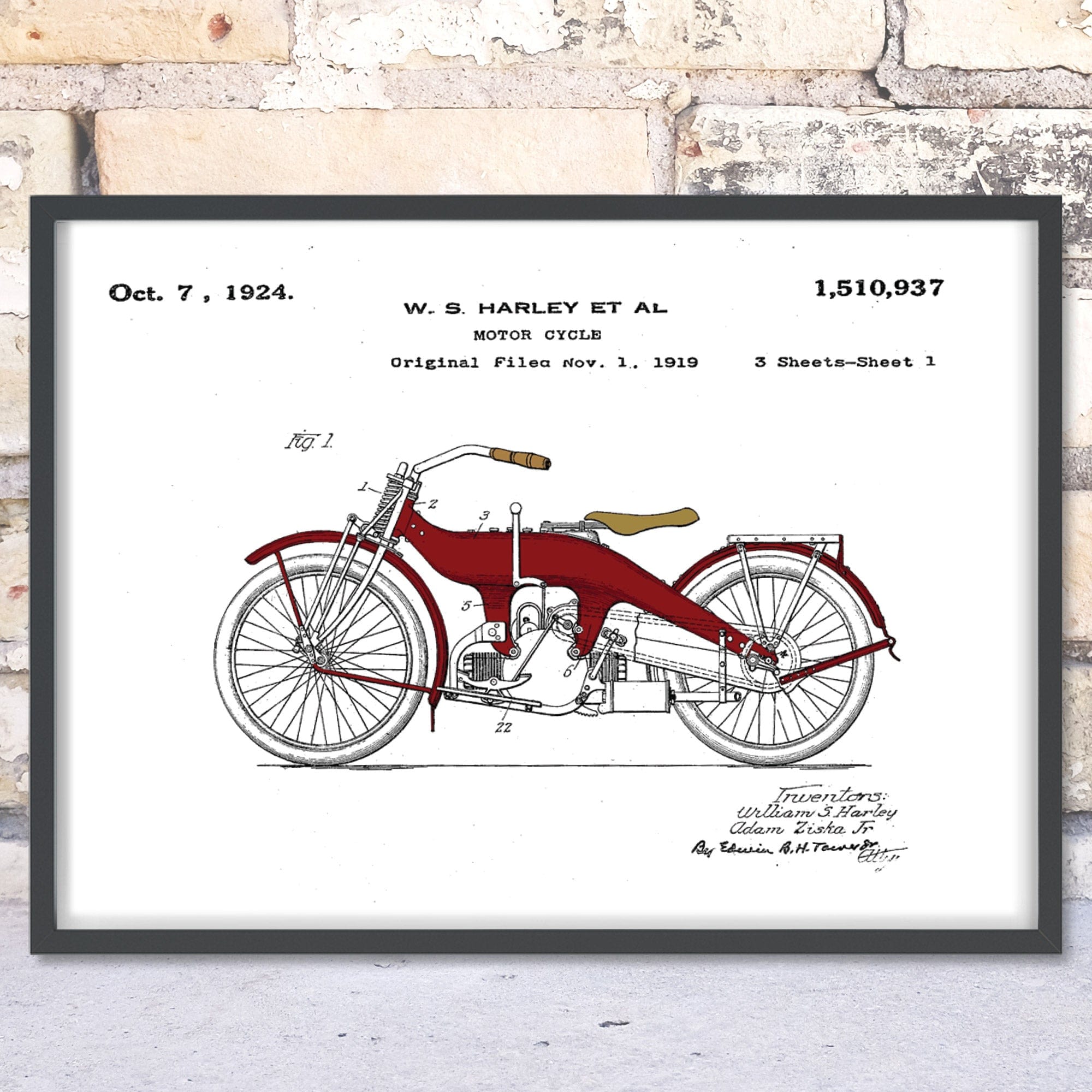 Original 1924 US Patent print of a Harley Davidson Motorcycle