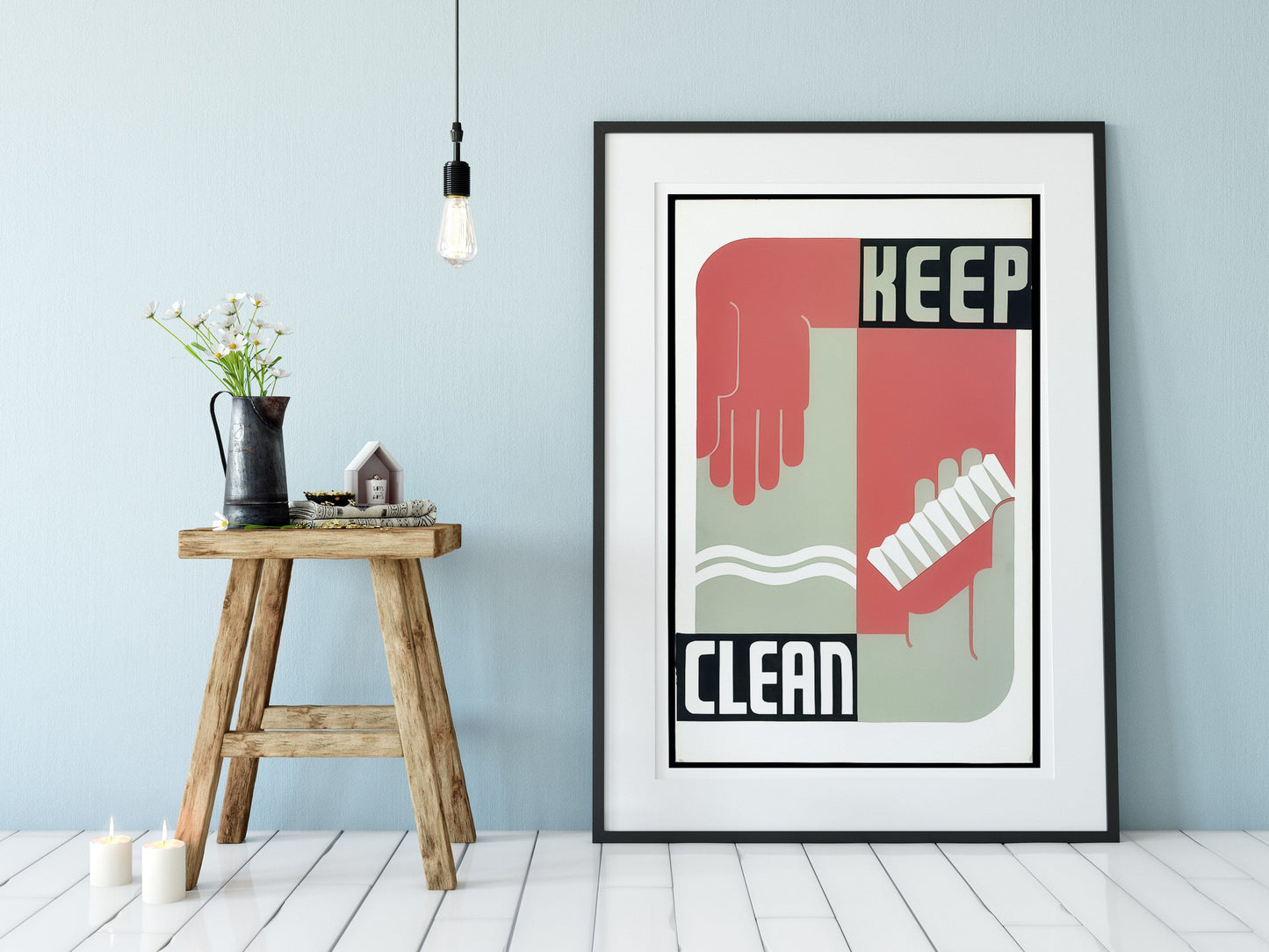 Vintage wall art graphic illustration print, taken from the original 1930's WPA print 'keep clean' vintage poster