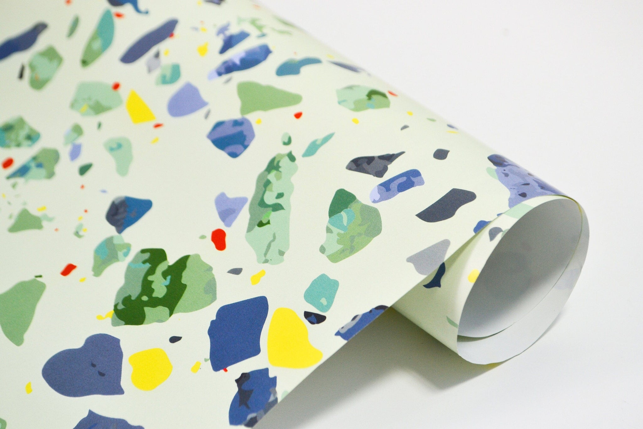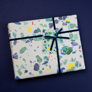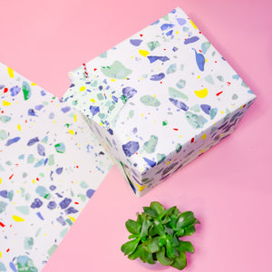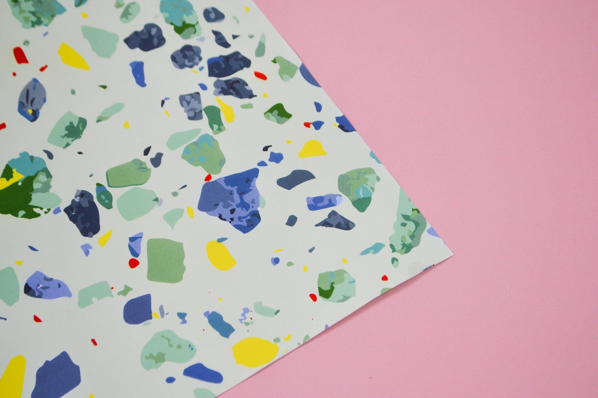Taken from a real Terrazzo, which has been digitised and hand coloured for a brighter quirky print for a fun, chic and unique wrapping paper. Colourful Illustration pattern chic wrapping paper, Fun Luxury Gift Wrap Birthday Wrap.