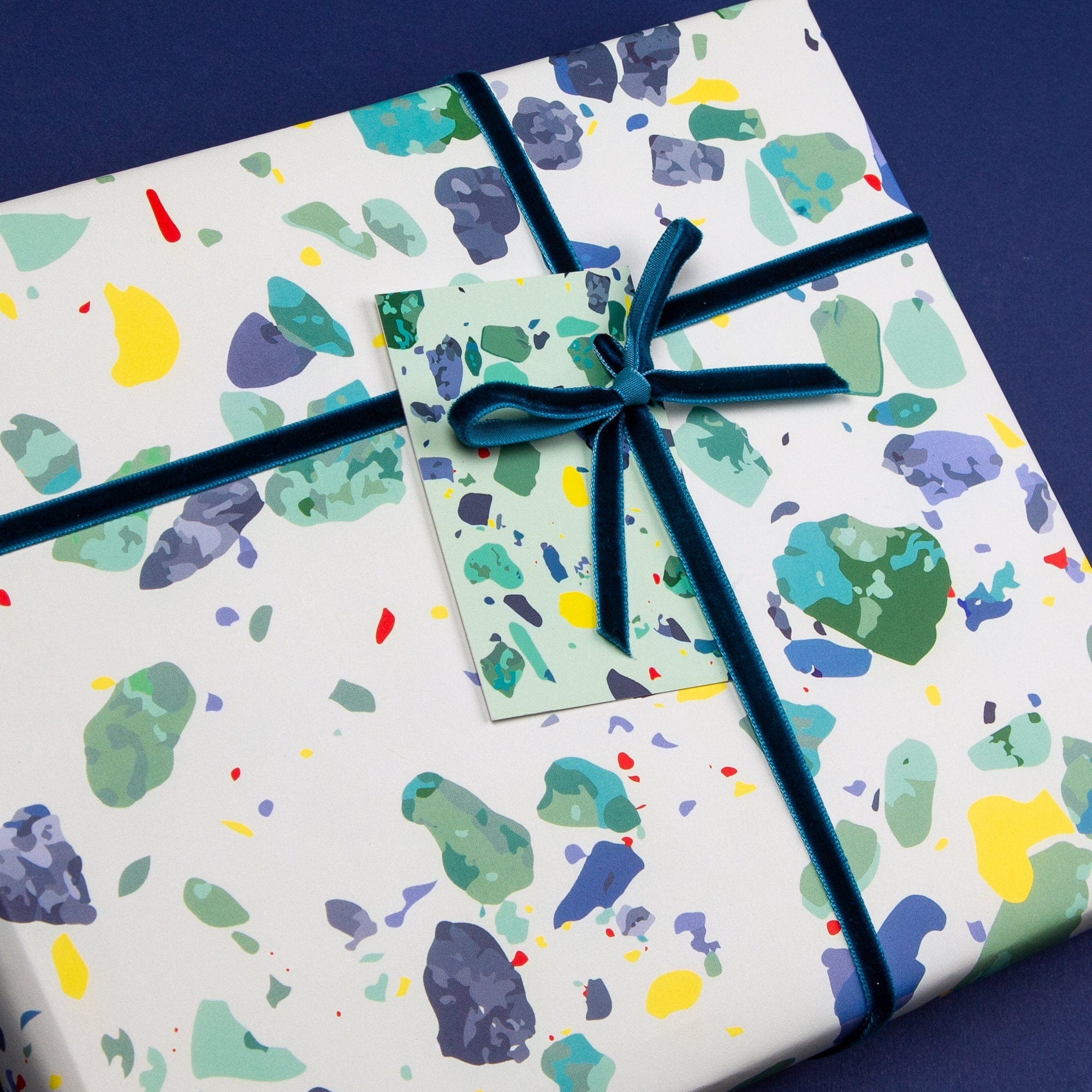 Mint Green Terazzo Wrapping Paper gift tag Set,