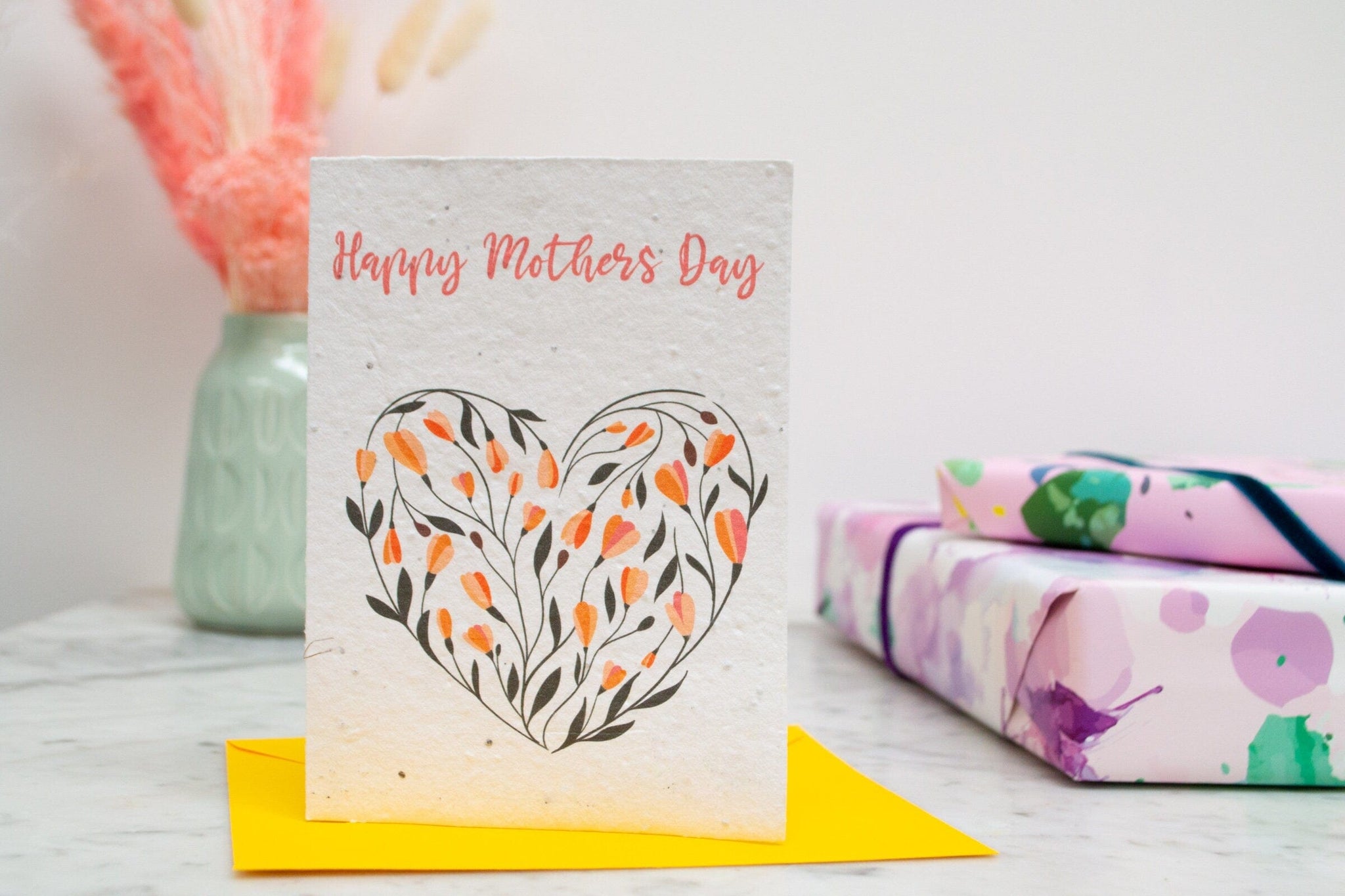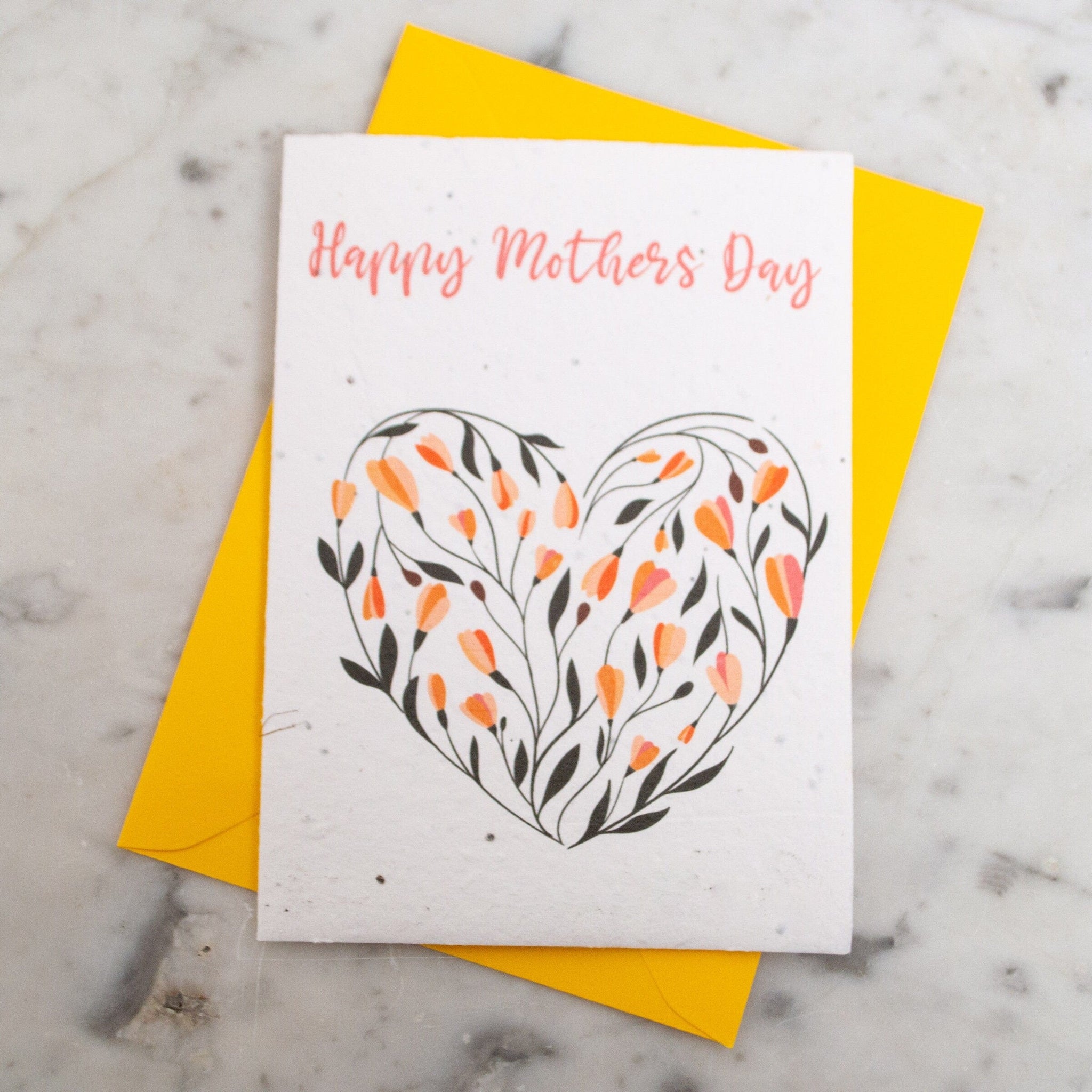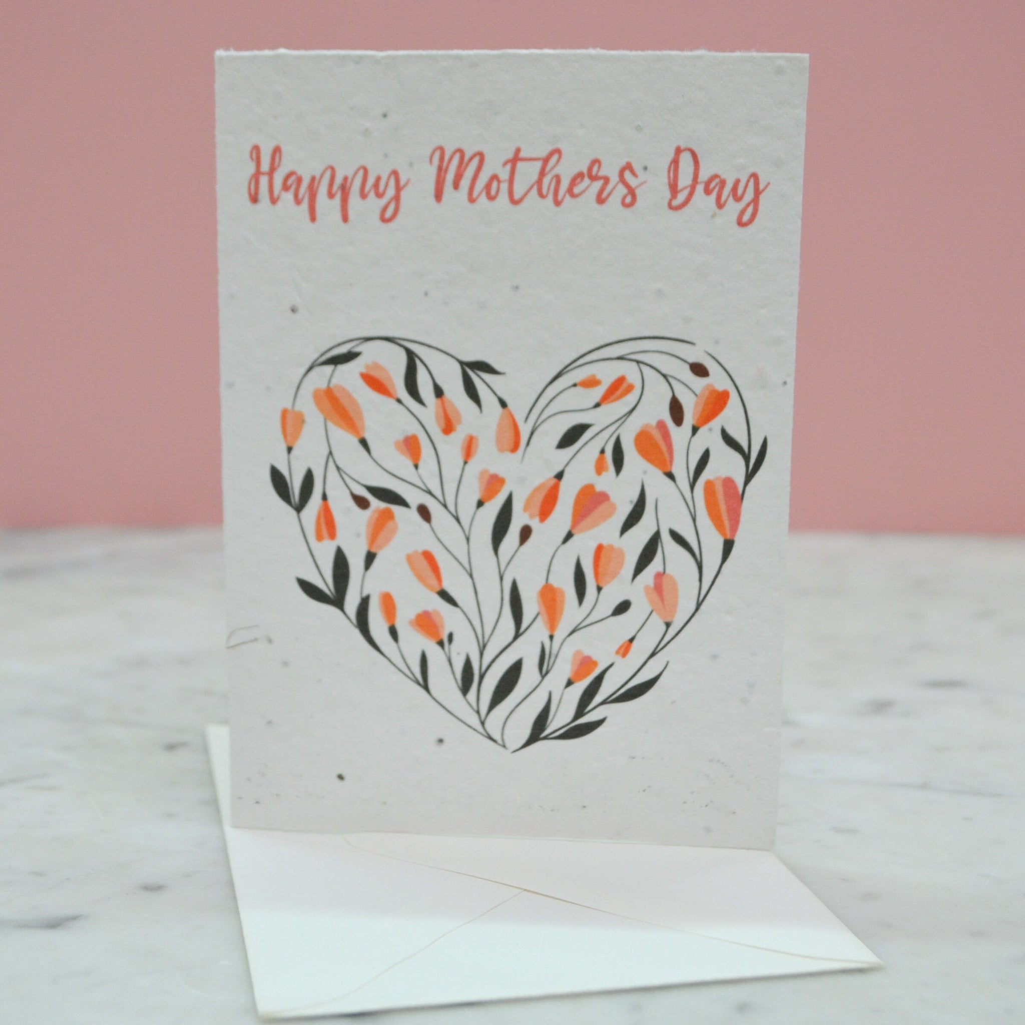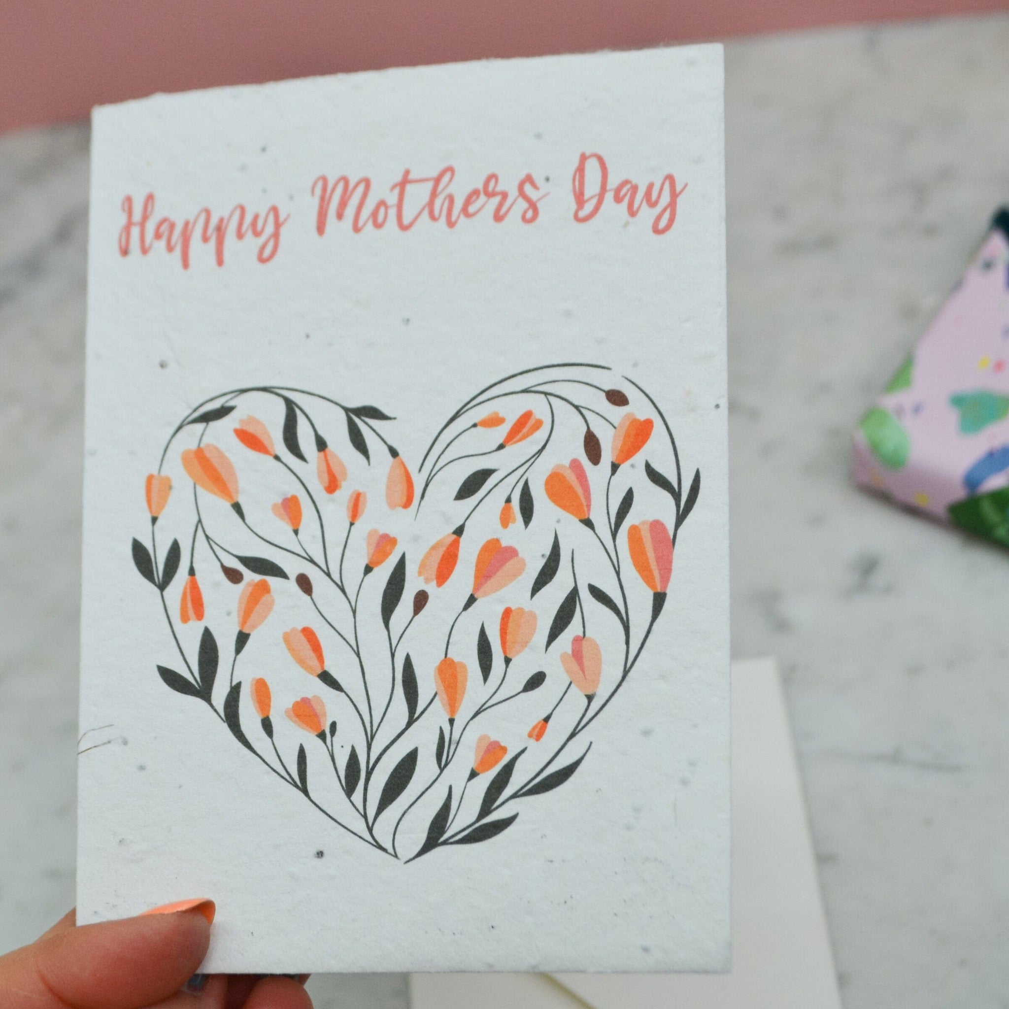 Mothers Day Plantable Seed Paper flower heart Card, Eco Seedpaper Card
