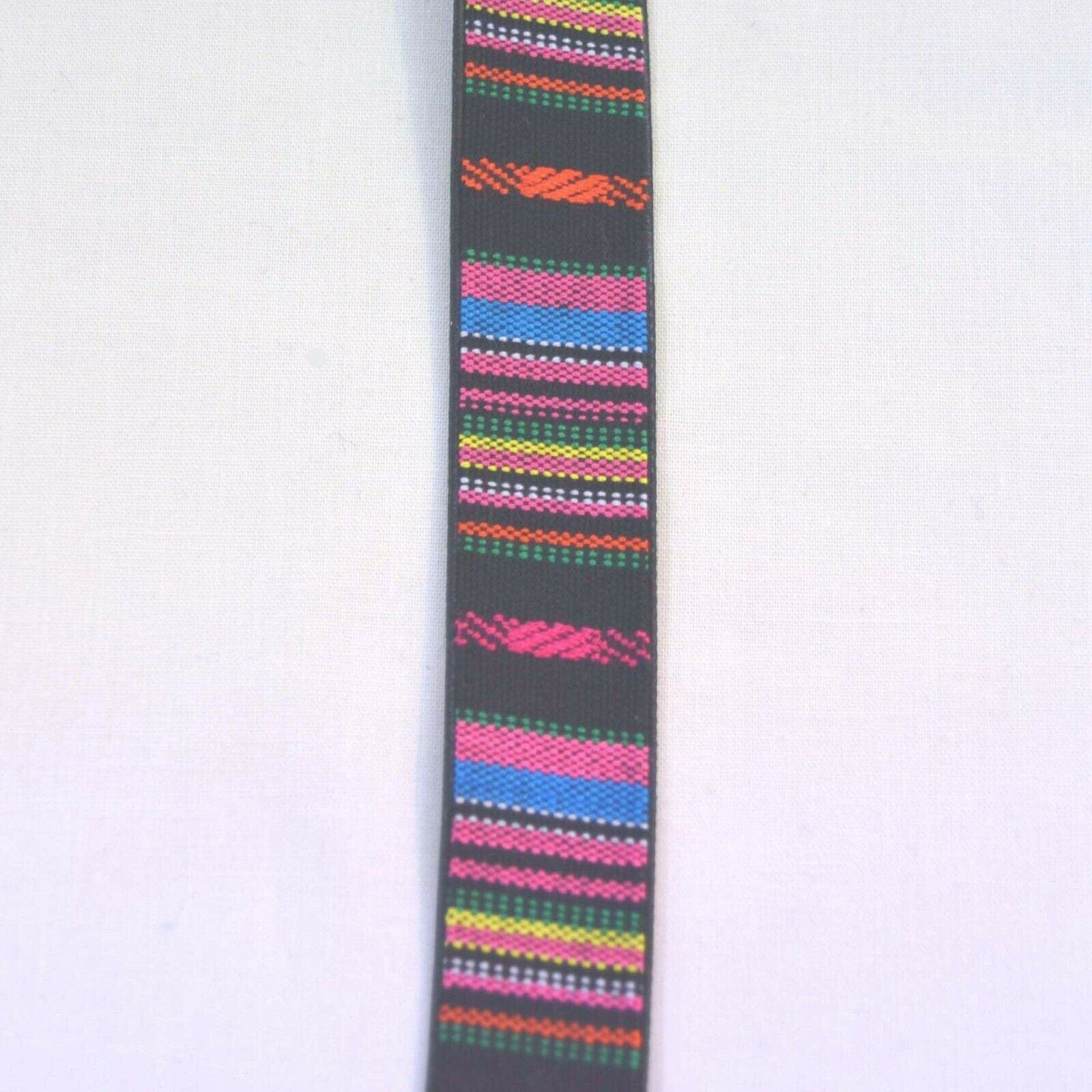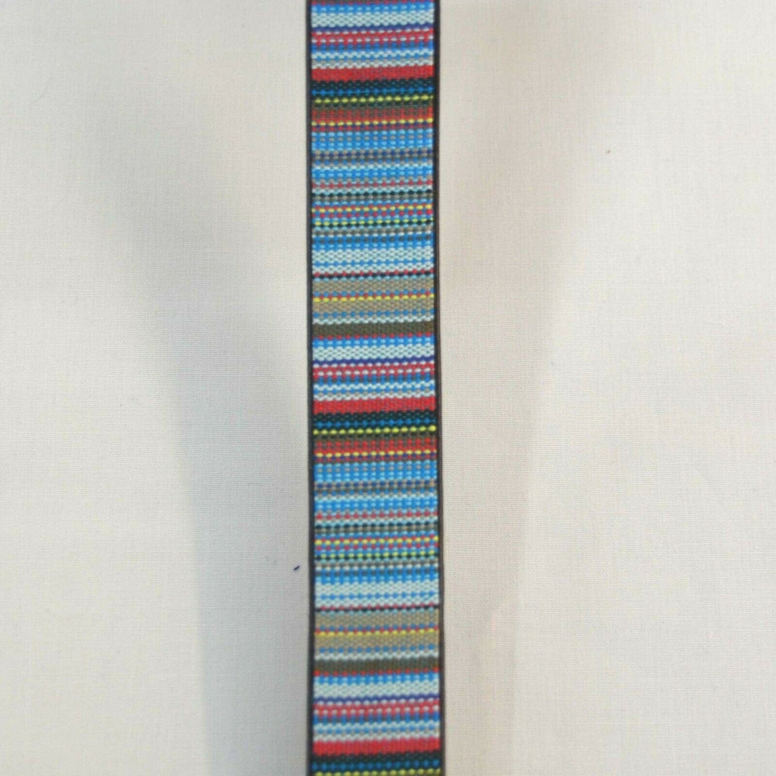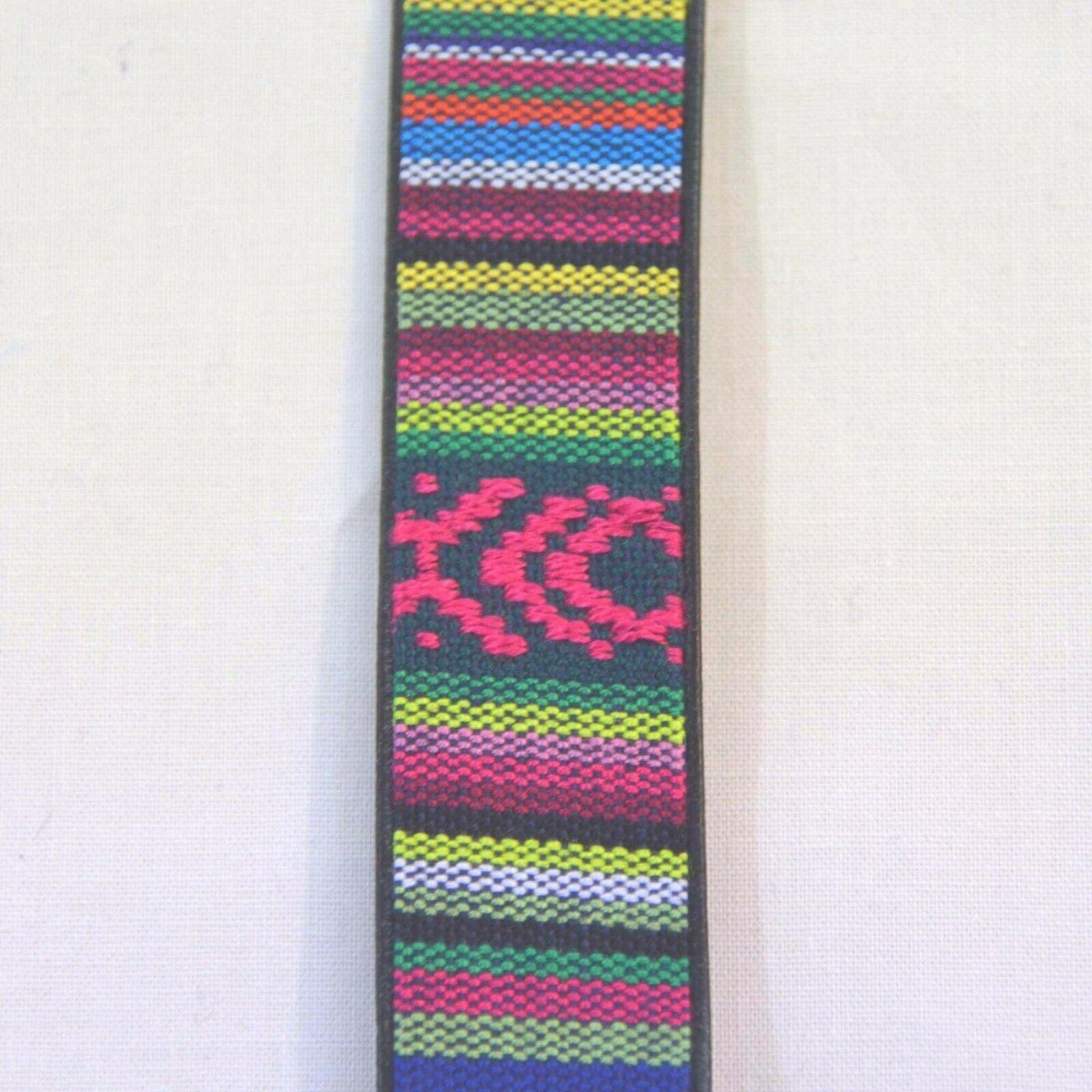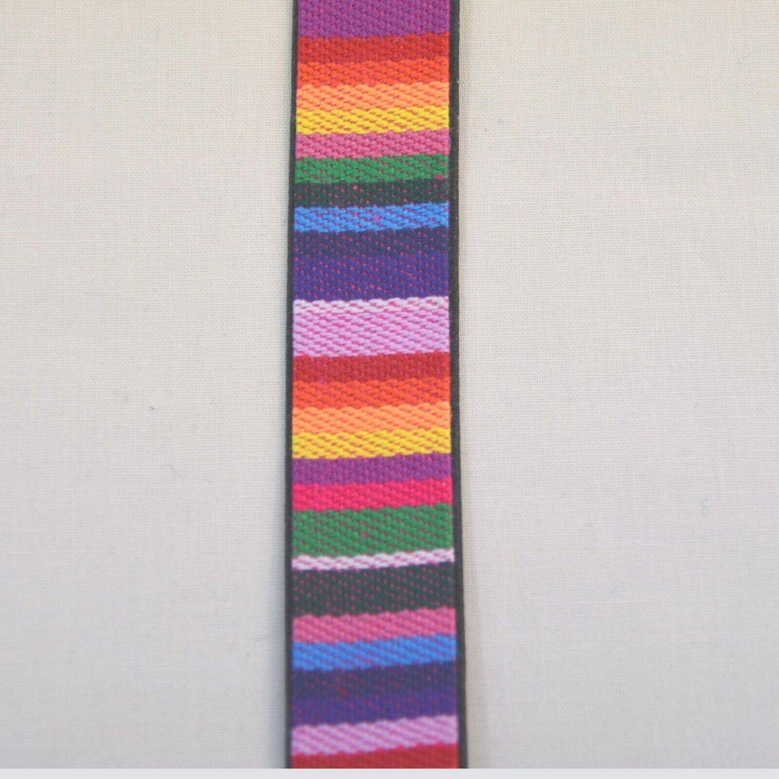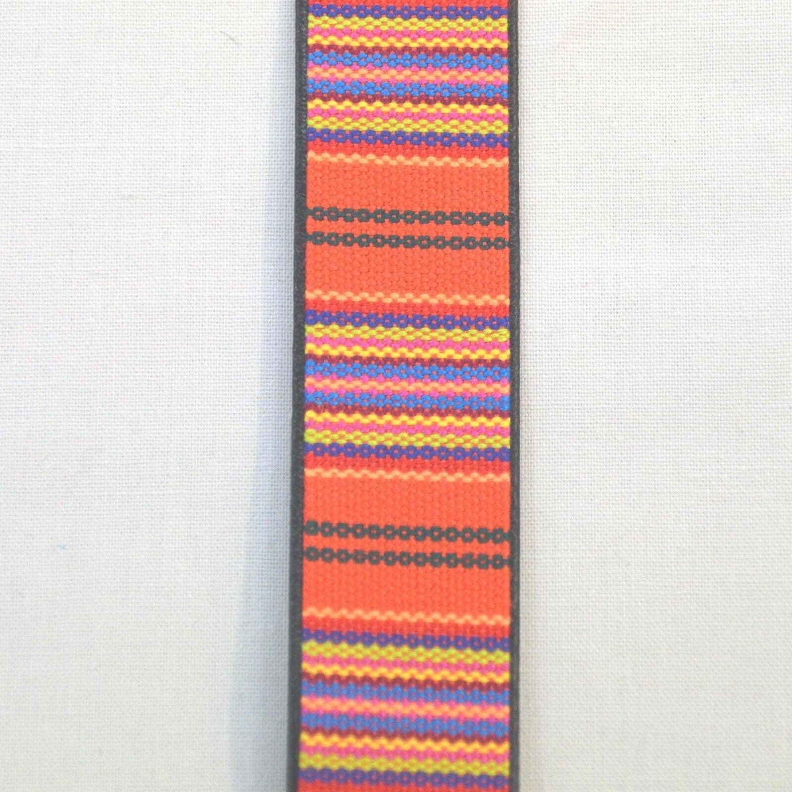 Colourful woven cotton strap backed with faux leather makes for a bright modern but minimalist design: