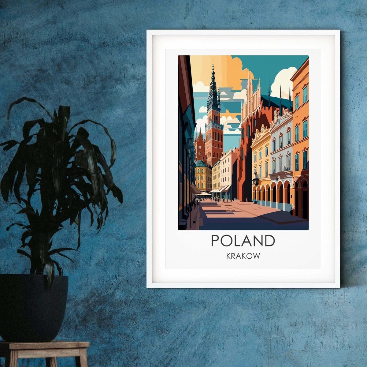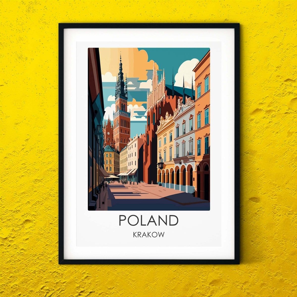Modern Poland Krakow Travel poster. Modern Graphic travel poster