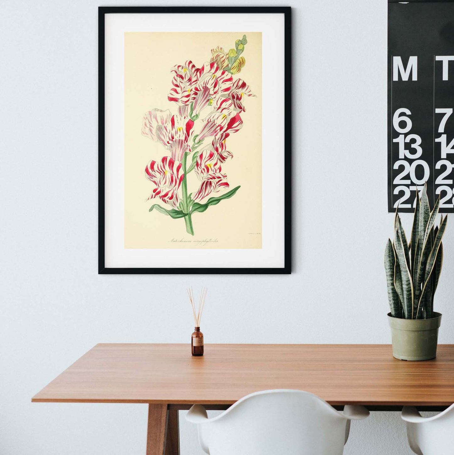 Pink snap dragon flower print, pink flower art framed Botanical Print