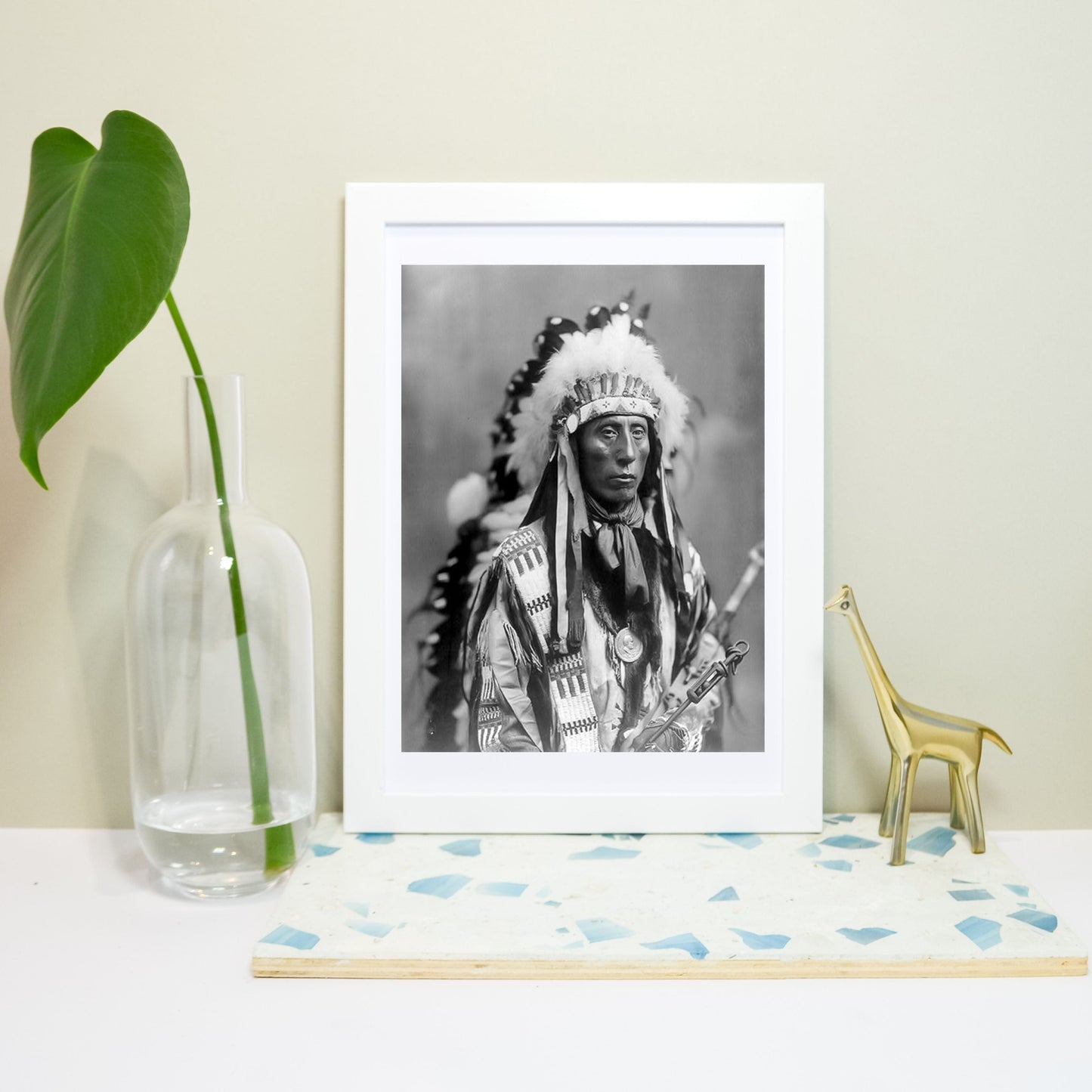 Vintage retouched antique photograph of American Indian '' indian chief, taken from the original 1899 native photography. American history print