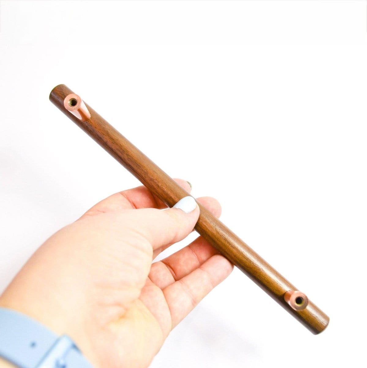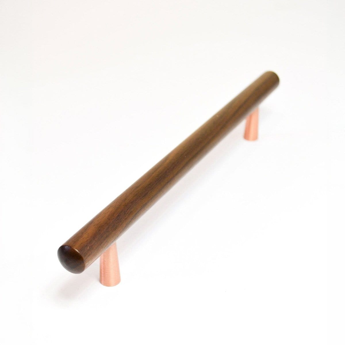 Handmade minimalist solid Walnut handle with copper fixings, copper and wood handle